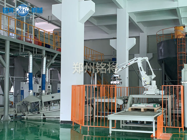 蘇州鴻川建筑材料有限公司全自動干粉砂漿生產線、自動包裝輸送碼垛生產線由鄭州銘將承建。本套生產線與其它生產線不同的是采用了氣體輸送,另外增添了自動輸送和碼垛系統(tǒng)。